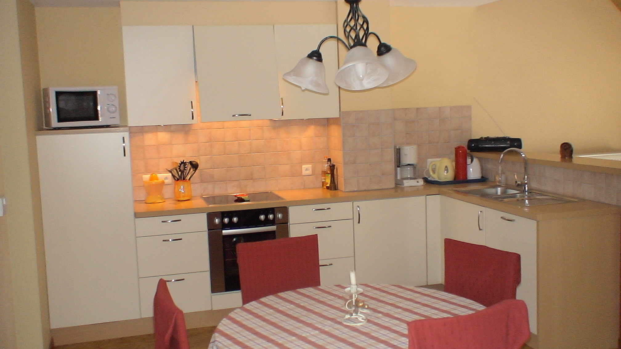 Cuisine équipée avec réfrigérateur, congélateur, four micro-ondes, four combiné, plaques cuisson, lave-vaisselle...